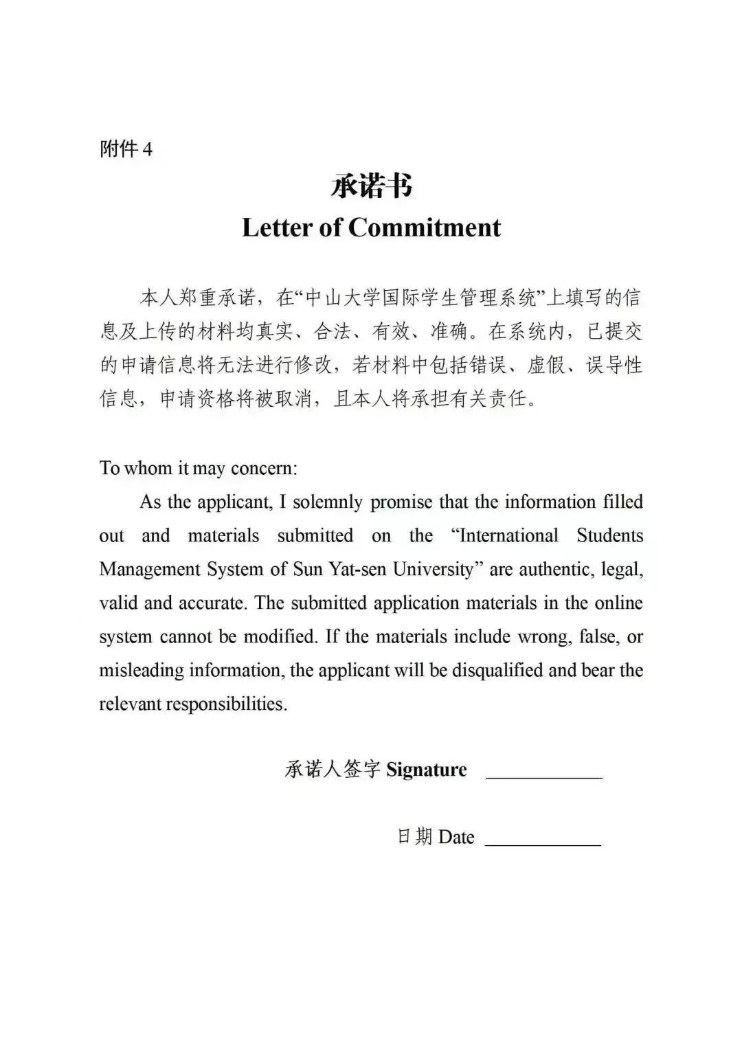 注:申请材料须为中文或英文的原件,如为其他语言的文件,须附上该文件原件、中文或英文翻译件及公证件。请申请人确保在系统上填写的邮箱、微信账号和联系电话准确无误。我校将通过邮件发出补充材料通知(邮件发出地址:admissions@mail.sysu.edu.cn),未及时补交材料、公证书不符合要求或联系信息有误等造成报名不成功,由申请人自行承担。