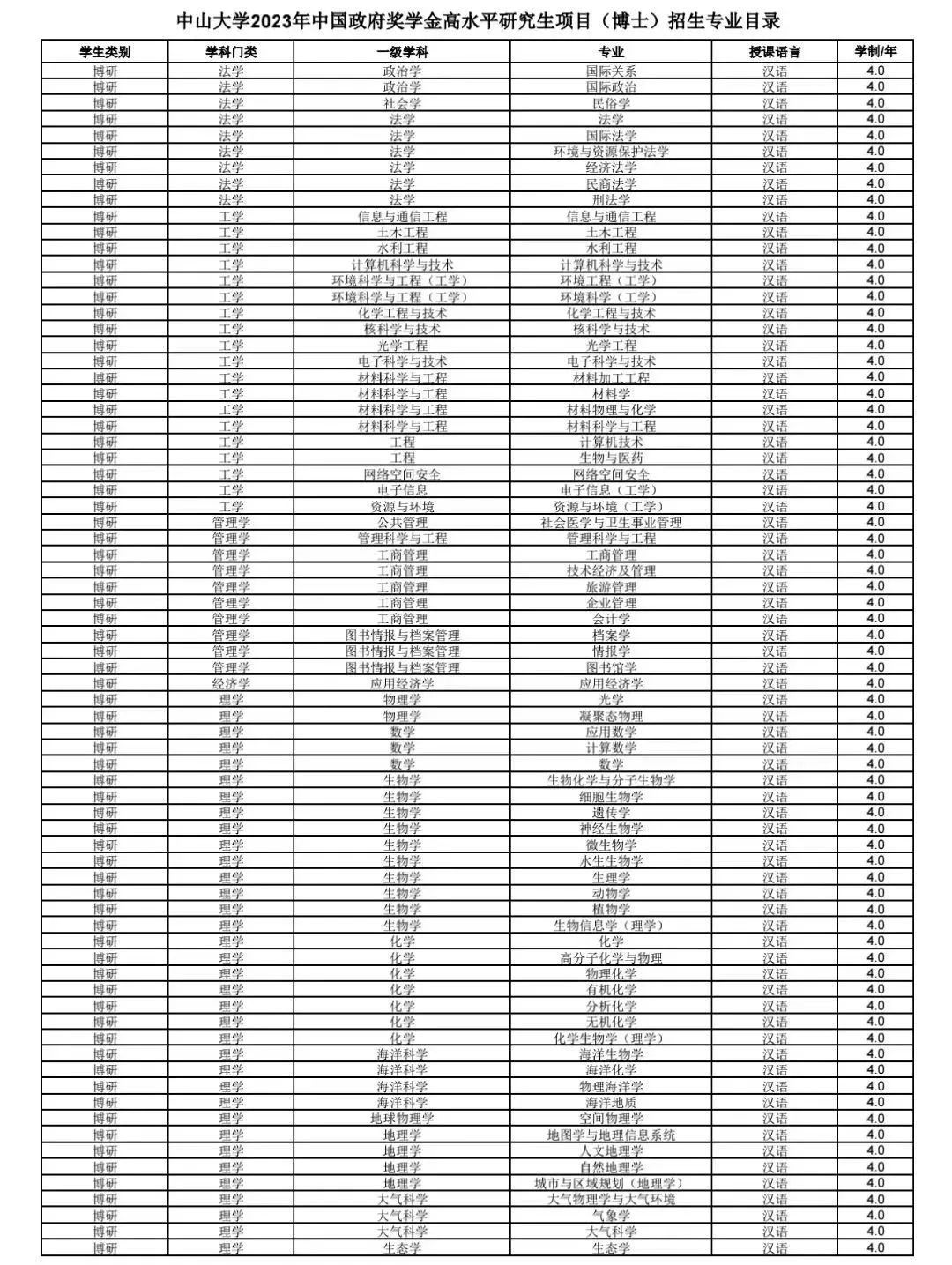 5.雷竞技raybet登录入口2023年中国政府奖学金高水平研究生项目(博士)招生专业目录