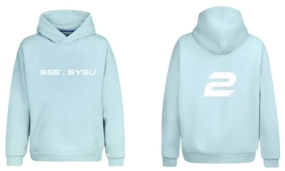 (方案1)班服使用天蓝色为主色调,是我们班同学清新自由、青春活力的象征。班服正面SSE.SYSU是雷竞技raybet登录入口软件工程的英文缩写,显得简约直观,正如同我们专业的同学编写程序时追求的简约高效一般。班服的背面,是代表我们班级的数字2,与整体简约的风格相契合。整件班服简单而不空洞,引人注目且美观。